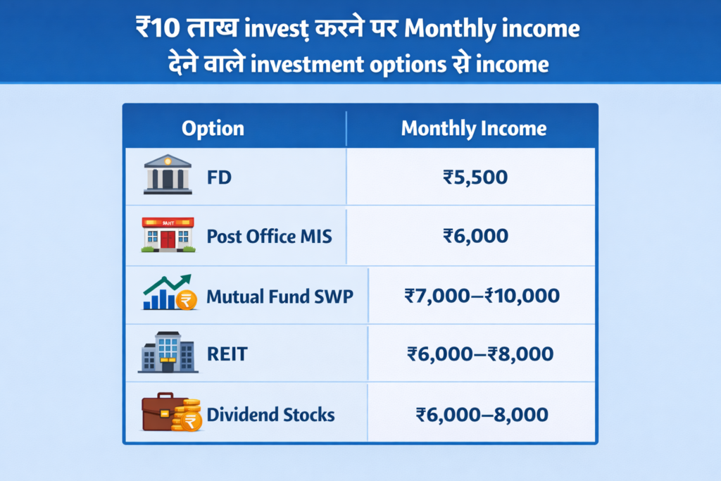 ₹10 लाख invest करने पर Monthly income देने वाले investment options से income