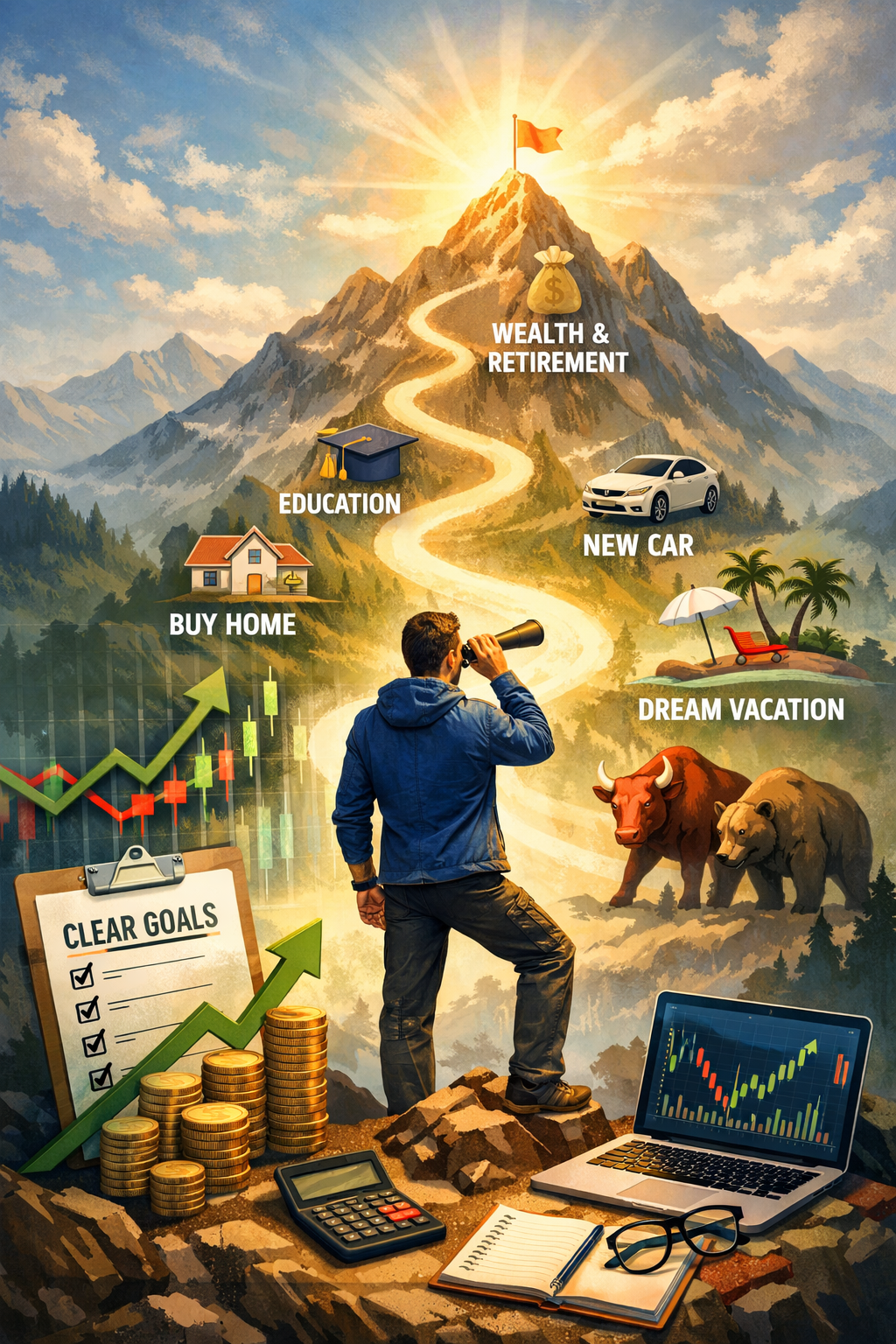 आपको अपने जीवन के लक्ष्य जैसे रिटायरमेंट, घर खरीदना, कार खरीदना, बच्चों की पढ़ाई आदि को स्पष्ट रखना चाहिए जिससे आपको यह पता रहे की किस लक्ष्य के लिए कितना इन्वेस्टमेंट करना है.